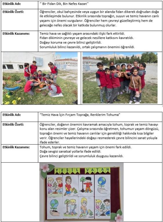Öğrencilerin doğayı koruma bilinci kazanmalarını, toprağın ve temiz havanın yaşam için önemini kavramalarını sağlamak. Çevreye karşı duyarlılıklarını artırmak, ekip çalışması yaparak sorumluluk bilinci geliştirmek.