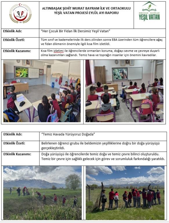 Yeşil Vatan Projesi Eylül Ayı Etkinlikleri - Tohum, Toprak, Temiz Hava